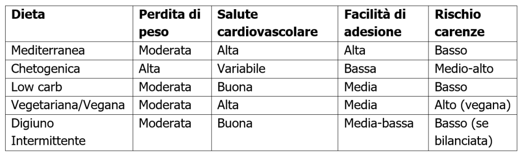 Non esiste una “dieta perfetta” valida per tuttI. La scelta dipende da: